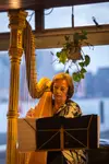 Erika Waardenburg op de harp van Rosa Spier.